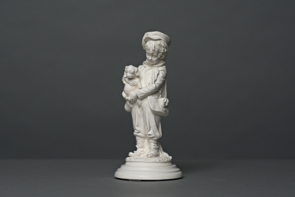Berliner Junge mit Hund sehr detailreich gearbeitet Ein schönes Souvenir für Berlin-Freunde Material: Zellan Größe: ca. 10 x 10 x 22 cm